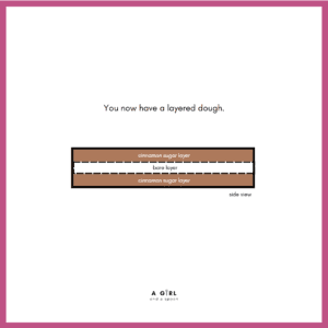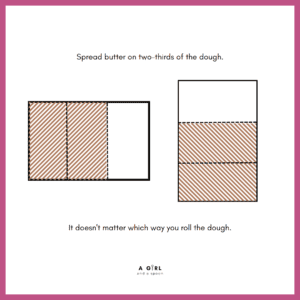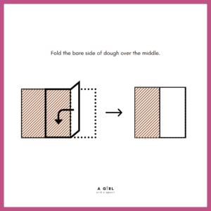 Fold the bare side of dough over the middle, like turning a page or folding a letter. Then fold the other third over the middle also. You will now have a layered dough.